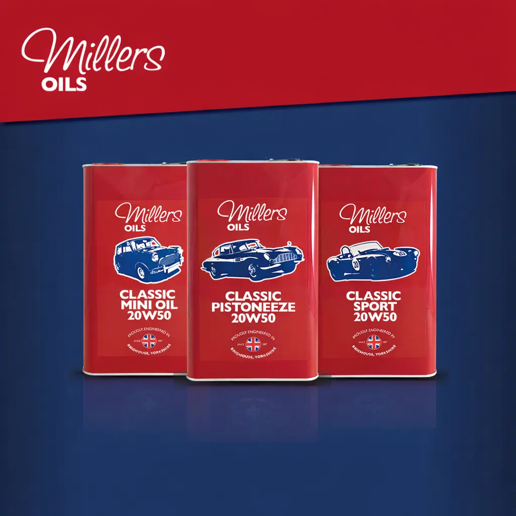 We use a range of lubricants from Millers Classic Oils in our workshop. Their comprehensive, quality range of products spans the whole history of motoring