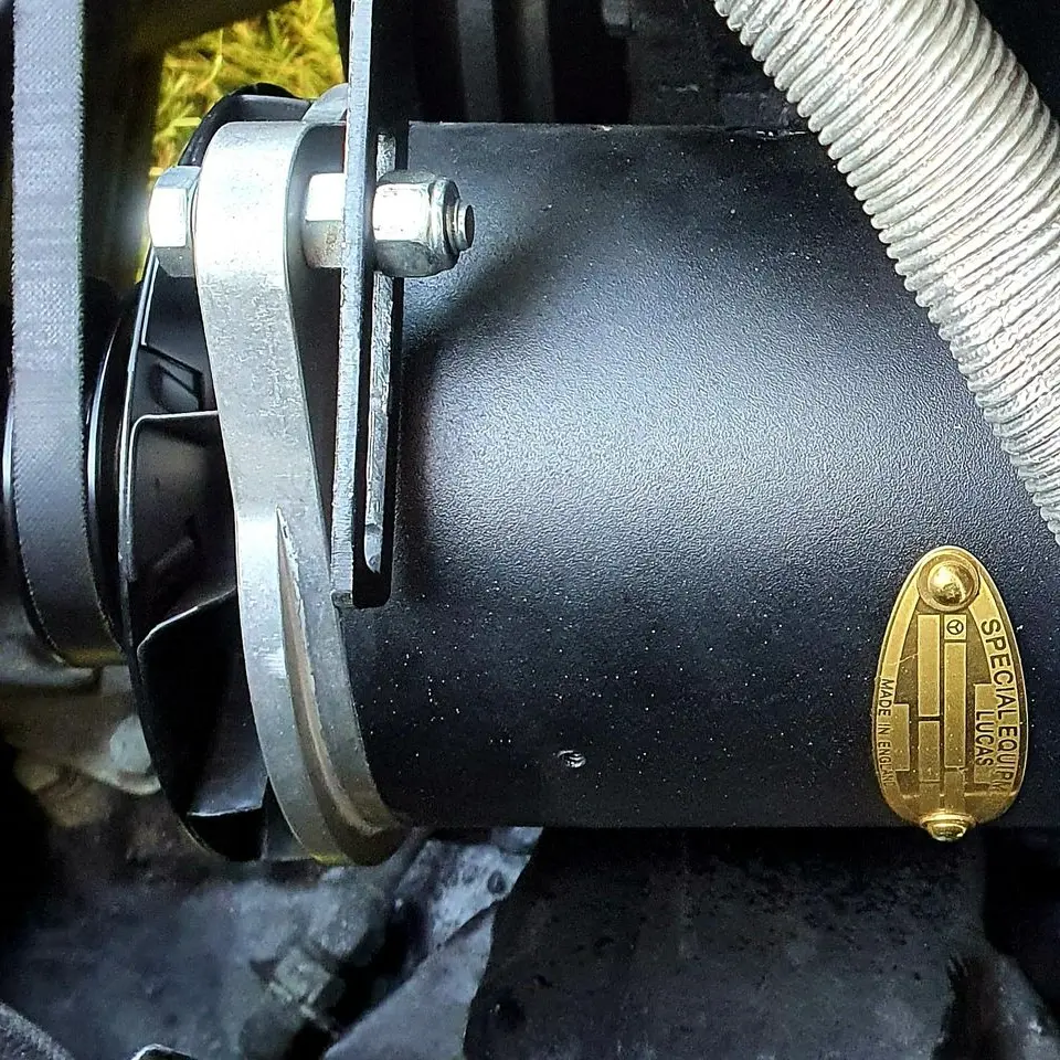 WOSP has engineered the internals of a modern, high-capacity Denso alternator into the housing of a traditional Lucas-style dynamo. This approach delivers modern charging performance while retaining the original appearance of the engine bay.